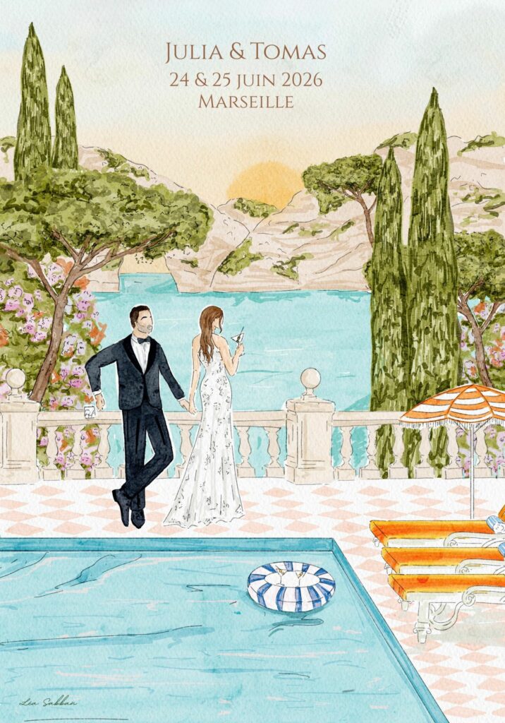 C’est avec une immense joie que nous vous invitons à célébrer notre mariage les 24 et 25 Juin 2026, à Marseille.